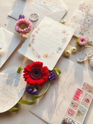 Whether you choose from our carefully Custom Collections Suites or opt for a Sur-Mesure invitations, we are dedicated to making your stationery reflect the essence of your special day. We aim to turn the simple act of receiving your beautifully crafted stationery into a moving and memorable experience for your guests.