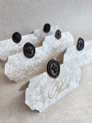 Découvrez notre service exclusif de papeterie pour le jour J. Si nous avons eu le plaisir de créer vos invitations, soyez assuré(e) que chaque détail de vos éléments de cérémonie et de réception sera parfaitement coordonné, pour une transition fluide de l’invitation à la célébration. Des livrets de cérémonie et programmes du jour aux menus raffinés, marque-places, cartes d’assignation de table, plans de table, cartes de remerciement, et bien plus encore : confiez-nous la sélection et la coordination de votre papeterie du jour J afin d’apporter la touche finale idéale à votre inoubliable célébration.