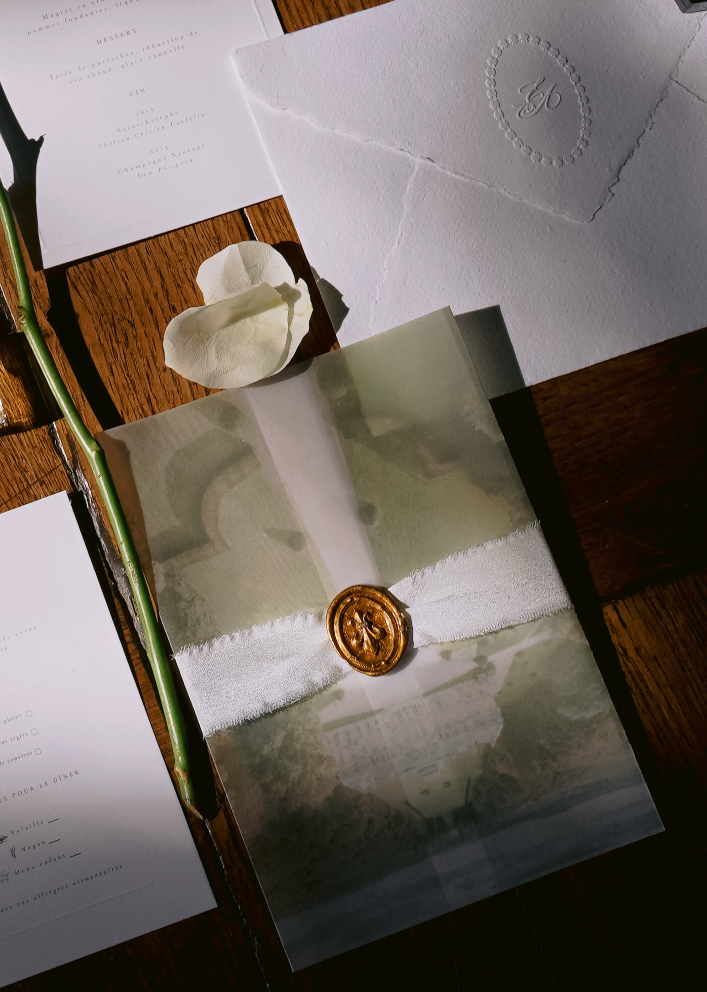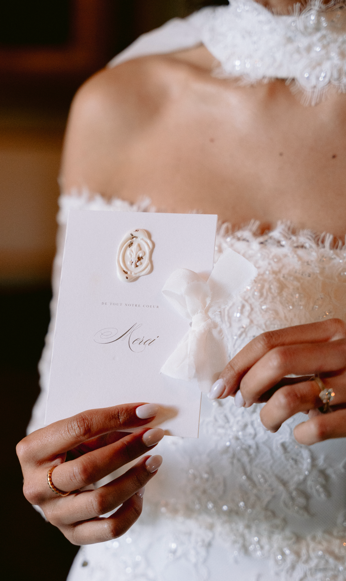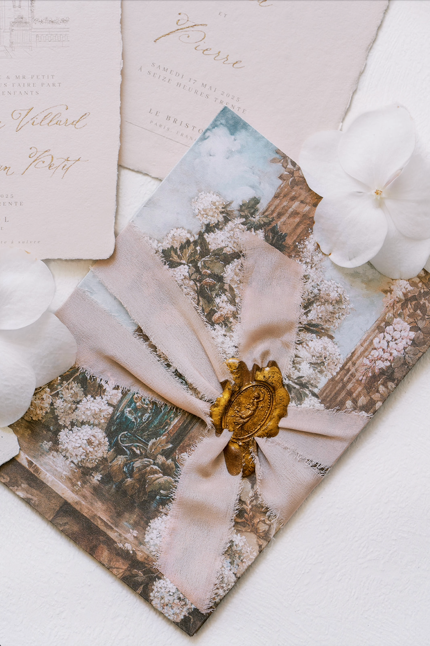 Assemblez votre suite de faire-part avec un délicat ruban de soie fait main. Cet embellissement doux et subtil ajoutera une touche romantique à vos invitations de mariage. Il se marie à merveille avec une couverture en vélin ou complète un sceau de cire, laissant vos invités émerveillés.