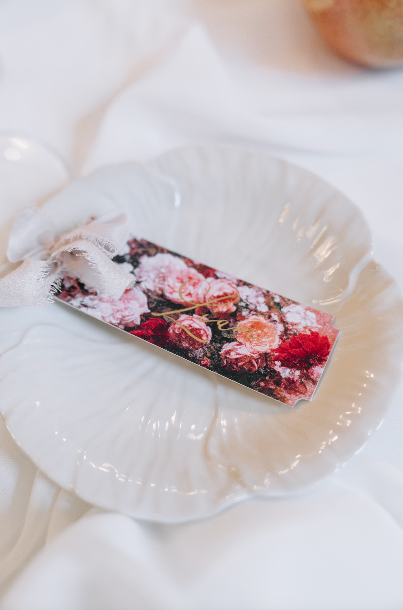 Notre gamme de couleurs de rubans de soie se trouve dans notre guide de collection, vous permettant de sélectionner la teinte qui correspond le mieux à votre thème. Vous pourrez nous dévoiler votre choix lors de notre communication de suivi après avoir passé votre commande.